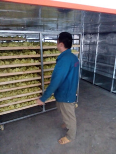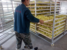 鮮花烘干量:800-1500公斤,烘干時(shí)間18-26小時(shí),規(guī)格:寬高長(zhǎng)2750*2250*8550  6號(hào)3KW循環(huán)風(fēng)機(jī)2臺(tái),1.1KW引風(fēng)機(jī)1臺(tái),GS-20熱風(fēng)爐1臺(tái),156個(gè)托盤,托盤尺寸1250*1000