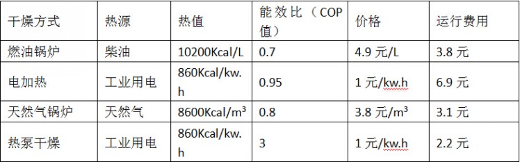 高溫?zé)岜煤娓蓹C組在工作時,與普通的空調(diào)以及熱泵機組一樣,在蒸發(fā)器中吸收低溫環(huán)境介質(zhì)中的能量QA:它本身消耗一部分能量,即壓縮機耗電QB:通過工質(zhì)循環(huán)系統(tǒng)在冷凝器中時行放熱QC,QC=QA+QB,因此高溫?zé)岜煤娓蓹C組的效率為(QB+QC)/QB,而其他加熱設(shè)備的加熱效率都小于1,因此高溫?zé)岜煤娓蓹C組加熱效率遠(yuǎn)大于其他加熱設(shè)備的效率,采用高溫?zé)岜煤娓蓹C組作為烘干裝置可以節(jié)省能源,同時還降低CO2等污染物的排放量,實現(xiàn)節(jié)能減排的效果。