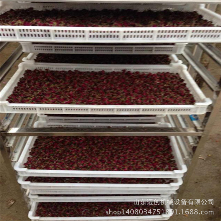 烘干機(jī)采用低溫、加強(qiáng)循環(huán)風(fēng)、強(qiáng)排濕進(jìn)行烘干,能保證玫瑰花自然色澤,形狀飽滿,不損壞花型,不破壞其自然藥效,營養(yǎng)成分不流失,該設(shè)備自動(dòng)化程度高,不需要專人看管,烘干工藝全部由微電腦控制完成。