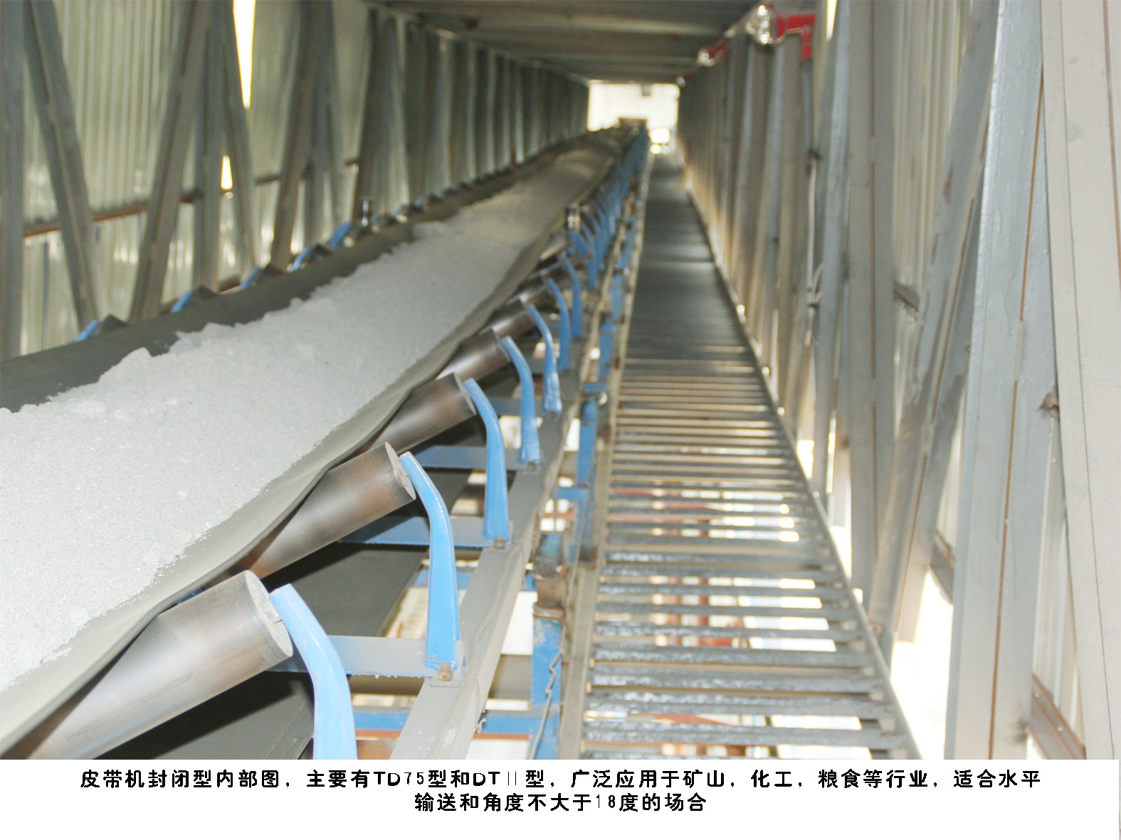 TD75型帶式輸送機(jī)是一種輸送量大,運(yùn)行費(fèi)用低,使用范圍廣,結(jié)構(gòu)簡(jiǎn)單,維護(hù)方便,成本低,通用性強(qiáng)等的輸送設(shè)備。帶式輸送機(jī)可輸送的物料種類繁多,即可輸送各種散料,也可輸送各種紙箱,包裝袋等貨物,被廣泛地應(yīng)用在冶金、礦山、煤炭、交通、水電、化工等部門,進(jìn)行裝車、裝船、轉(zhuǎn)載或堆積各種常溫狀態(tài)的松散密度為500~2500kg/m3各種散狀物料或成件物品。